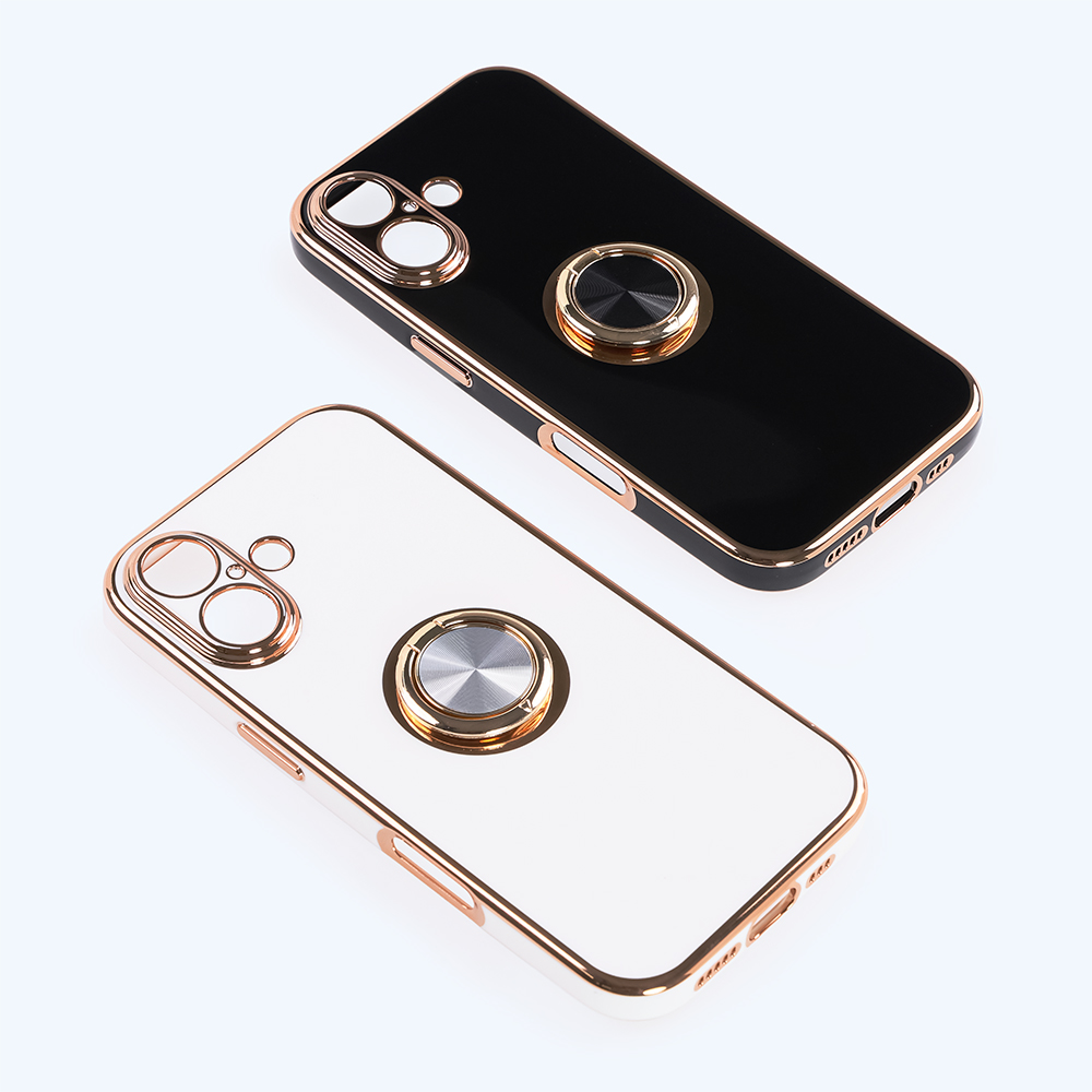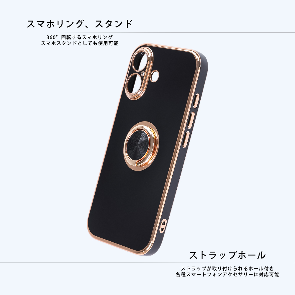 iPhone 17 / ソフトケース 精密設計 フレームメッキ リング付き / ホワイト/ゴールド