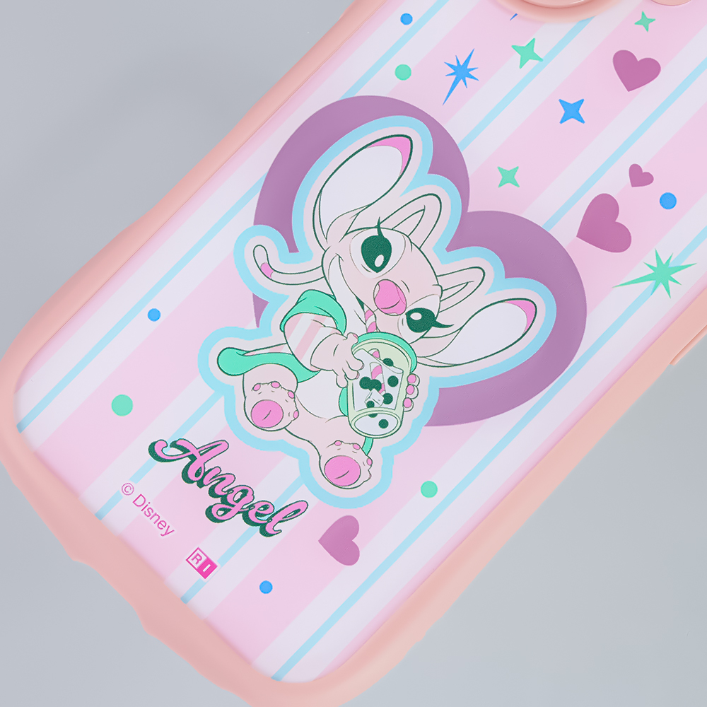 iPhone 17 / ディズニー / Puffull 衝撃吸収 バンパー ハイブリッドケース / エンジェル_ハートストライプ