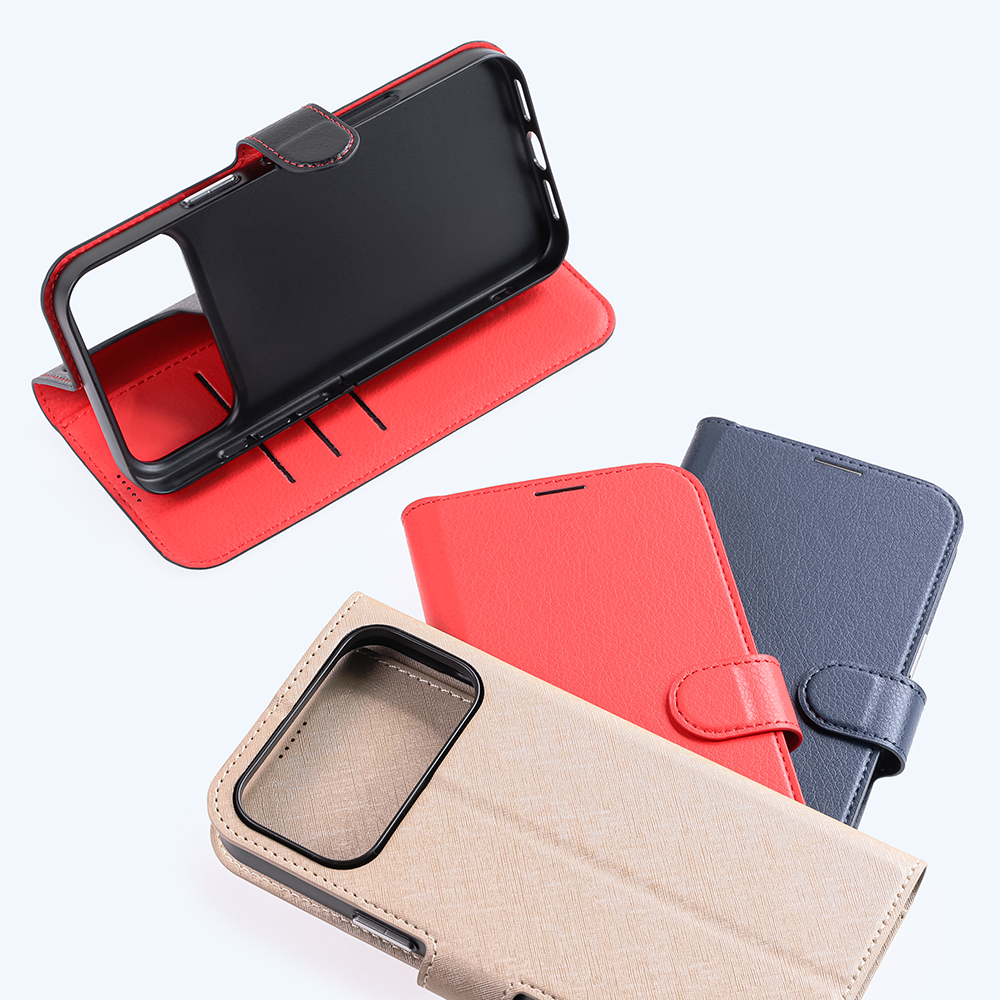 iPhone 17 Pro Max / 手帳型レザーケース シンプル マグネット / レッド