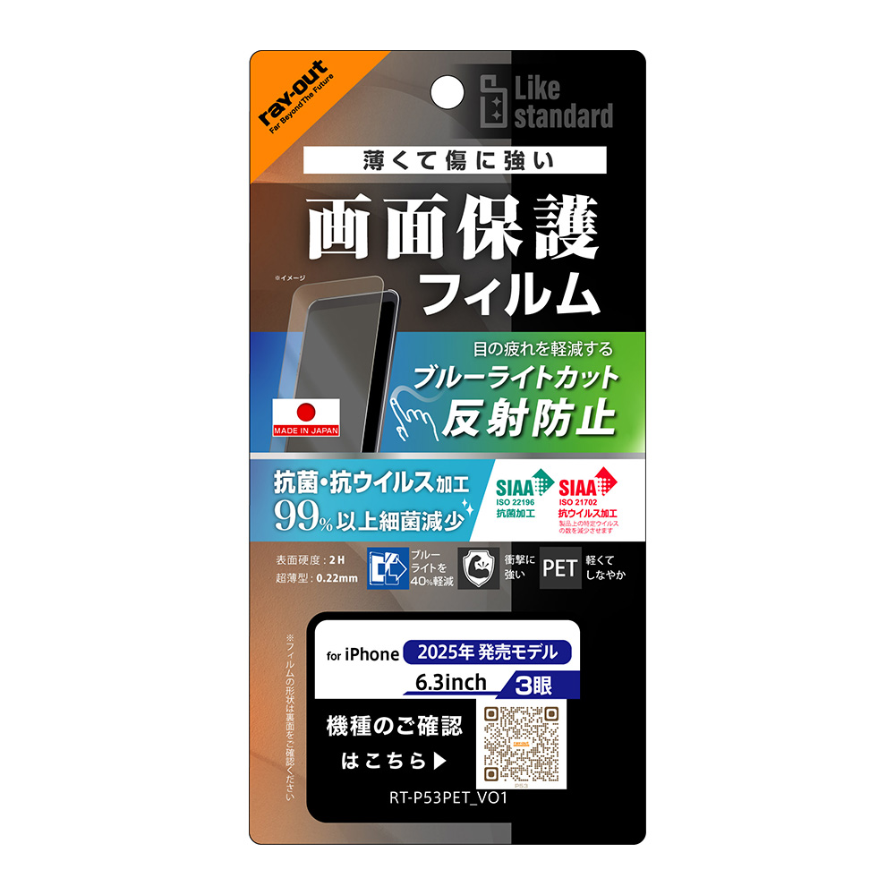 iPhone 17 Pro / フィルム ブルーライトカット 反射防止 耐衝撃 抗菌 抗ウィルス