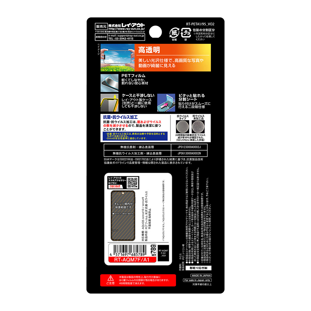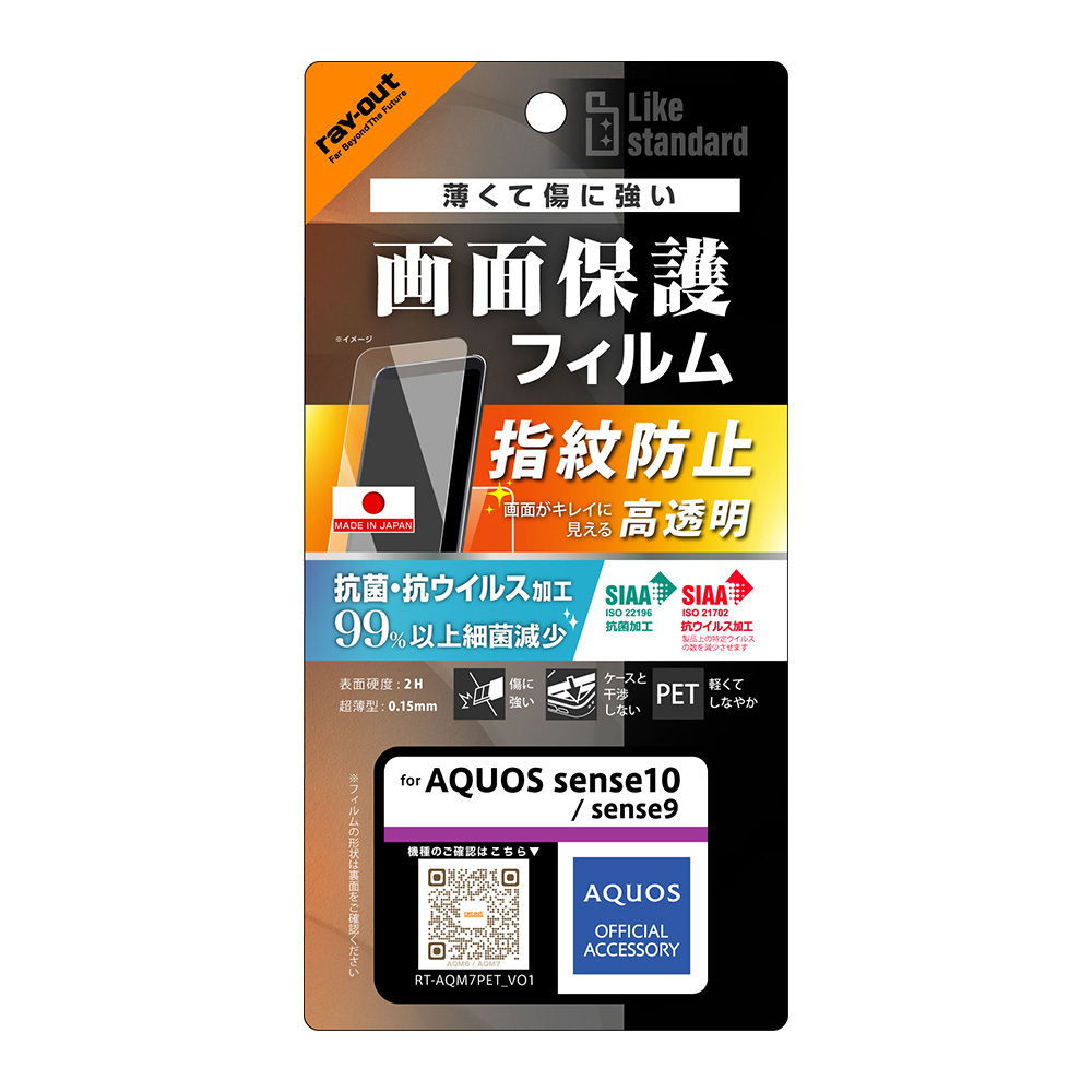AQUOS sense9 /AQUOS sense10 / PETフィルム 光沢 抗菌・抗ウイルス 平面保護 指紋防止