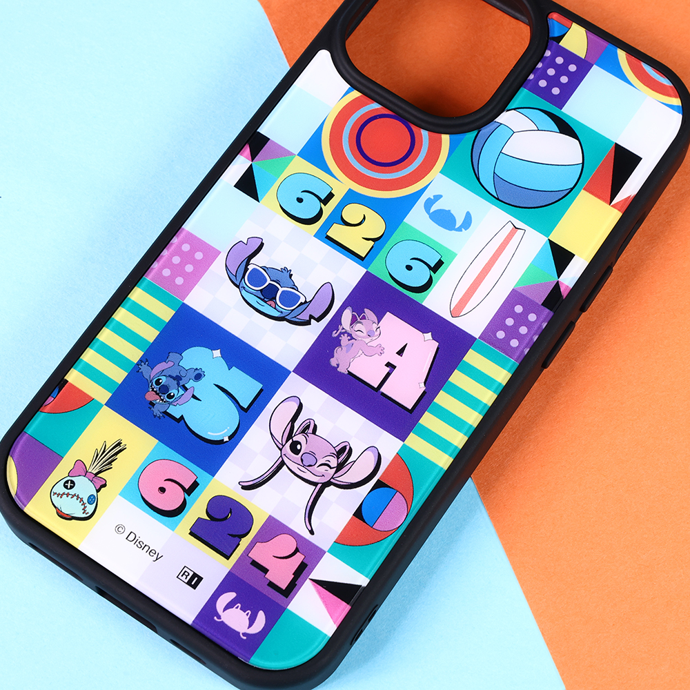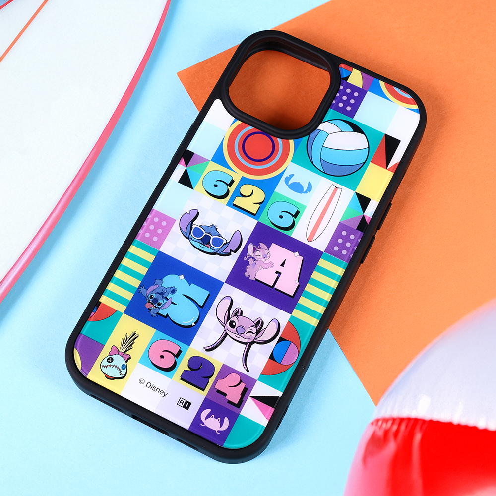 iPhone 15/14/13 / ディズニー / maru 衝撃吸収 バンパー ハイブリッドケース / スティッチとエンジェル_総柄