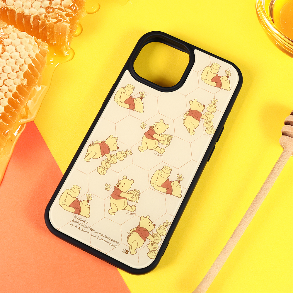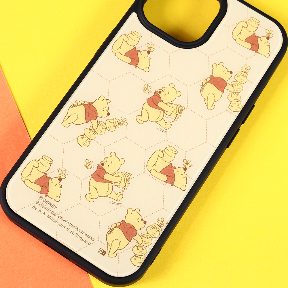 iPhone 15/14/13 / ディズニー / maru 衝撃吸収 バンパー ハイブリッドケース / プーさんとはちみつ_総柄
