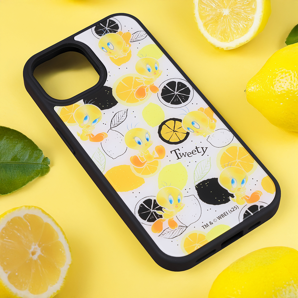 iPhone 15/14/13 / ルーニー・テューンズ / maru 衝撃吸収 バンパー ハイブリッドケース / トゥイーティー/総柄