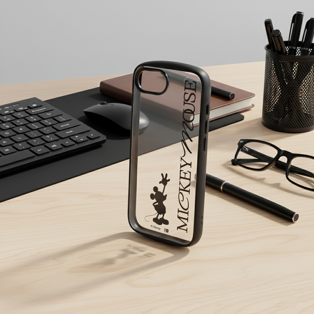 iPhone 16e / ディズニー / Puffull 衝撃吸収 バンパー ハイブリッドケース / ミッキーマウス _シルエット_B