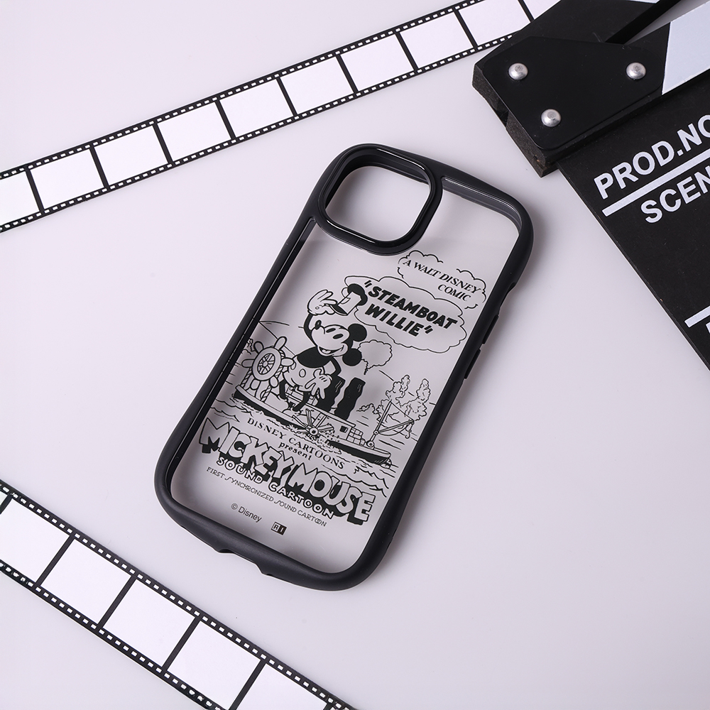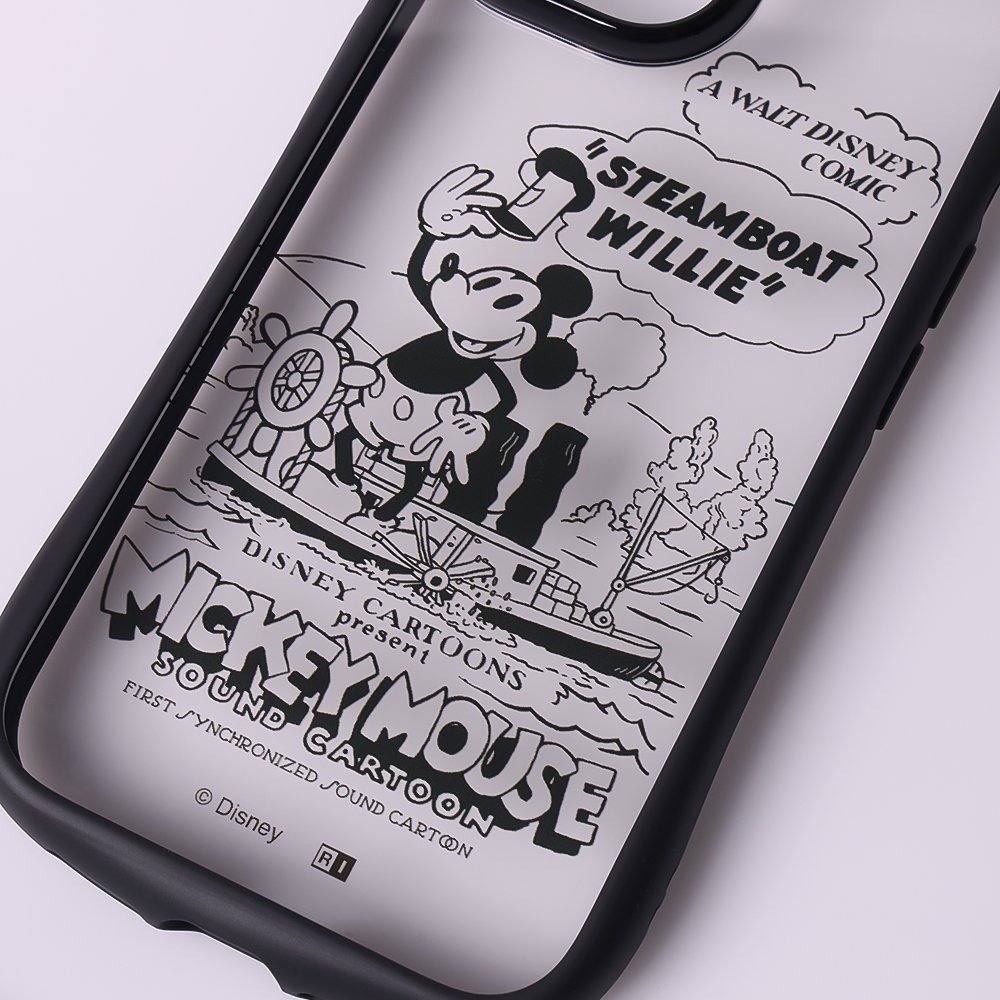 iPhone 15/14/13 / ディズニー / Puffull 衝撃吸収 バンパー ハイブリッドケース / ミッキー_蒸気船ウィリー