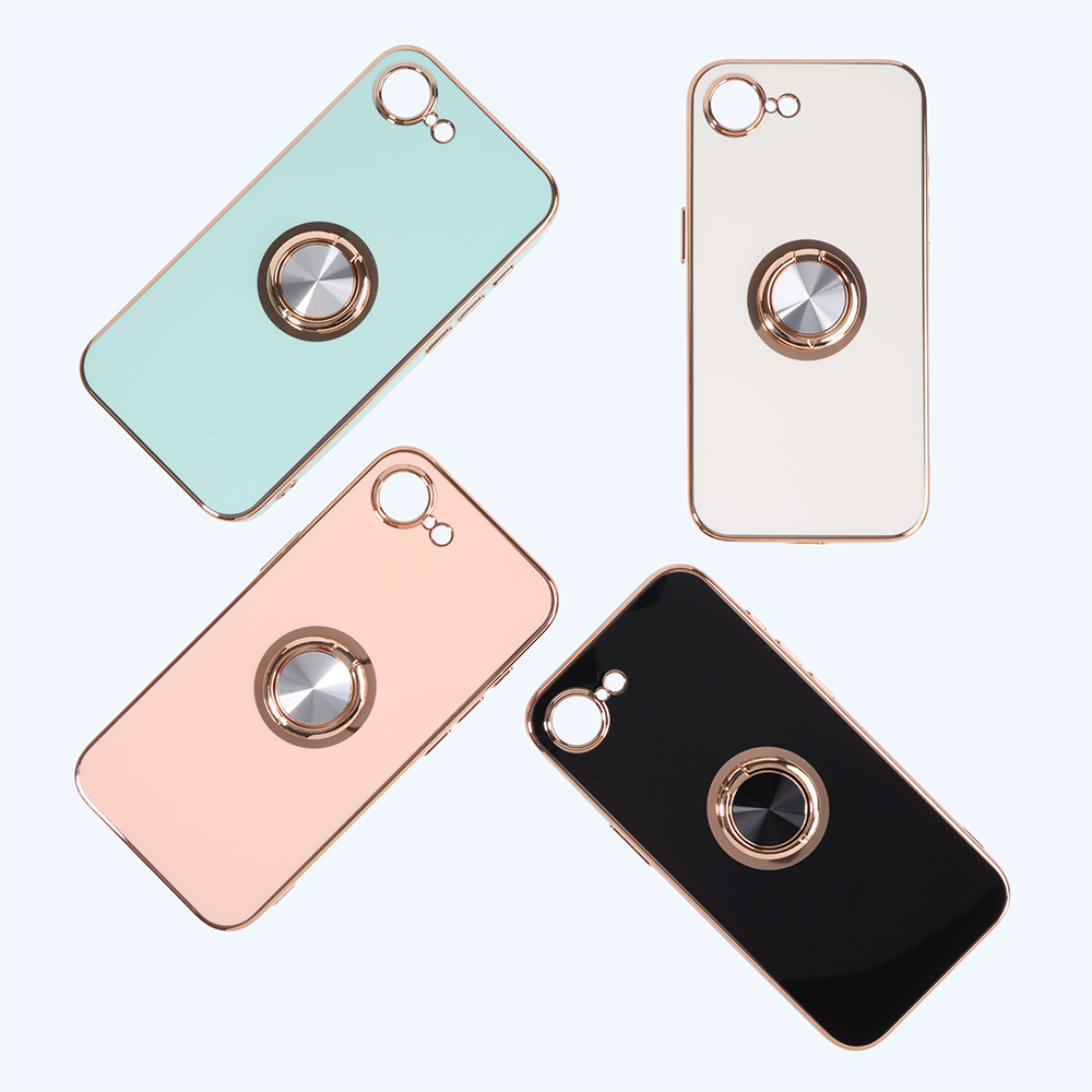 iPhone 16e / ソフトケース 精密設計 フレームメッキ リング付き / ピンク/ゴールド