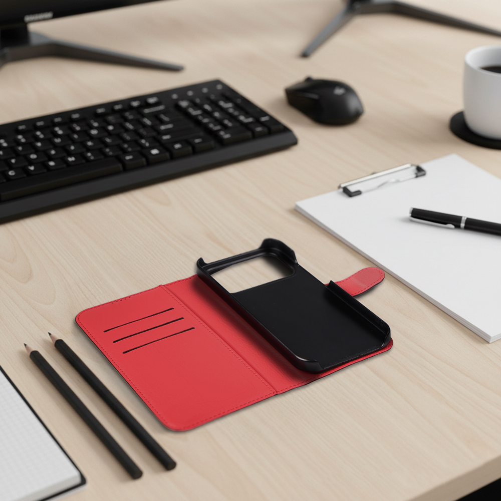 【26/3月下旬発売】POCO F8 Pro / 手帳型ケース シンプル マグネット / ブラック/レッド