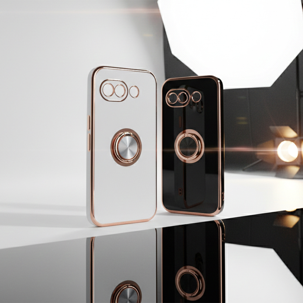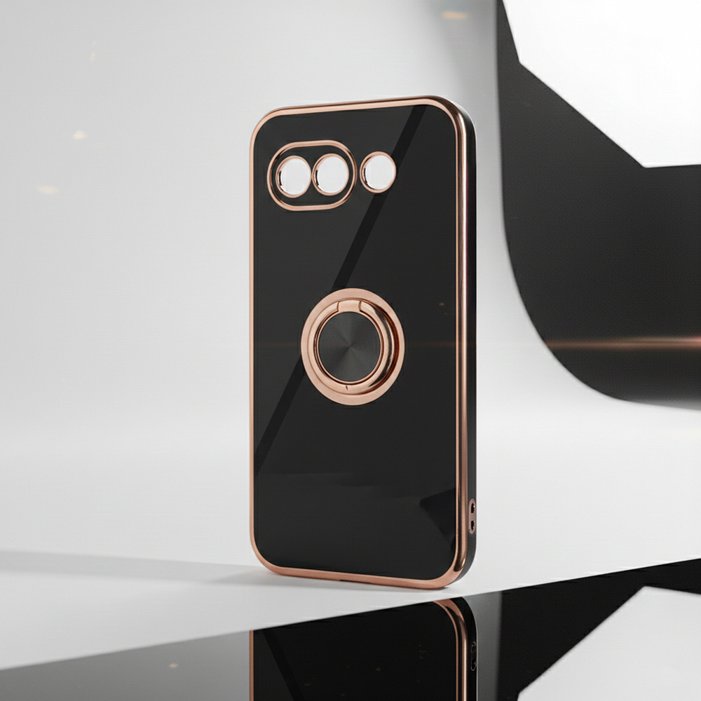 Google Pixel 10a / ソフトケース 精密設計 フレームメッキ +リング / ブラック/ゴールド