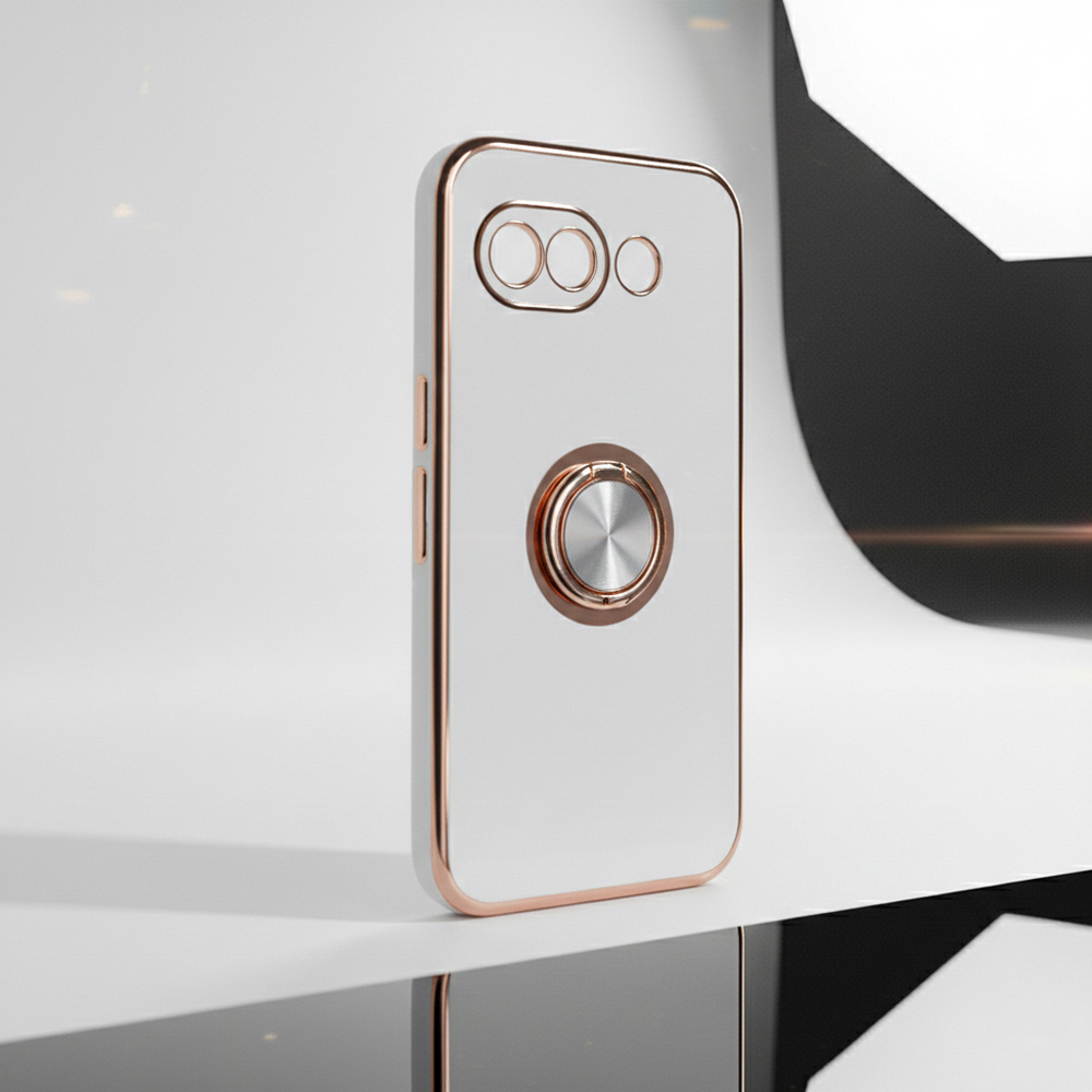 Google Pixel 10a / ソフトケース 精密設計 フレームメッキ +リング / ホワイト/ゴールド