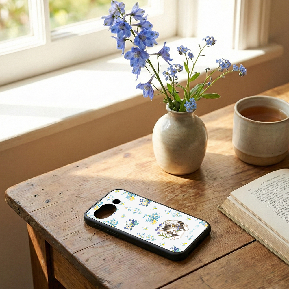 Google Pixel 10a / 猫のダヤン / maru 衝撃吸収 バンパー ハイブリッドケース / ダヤン_朝露の森