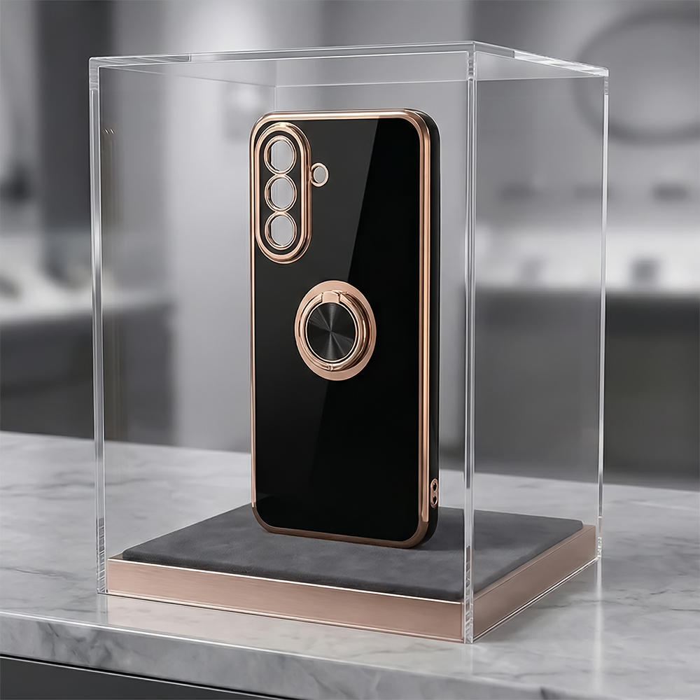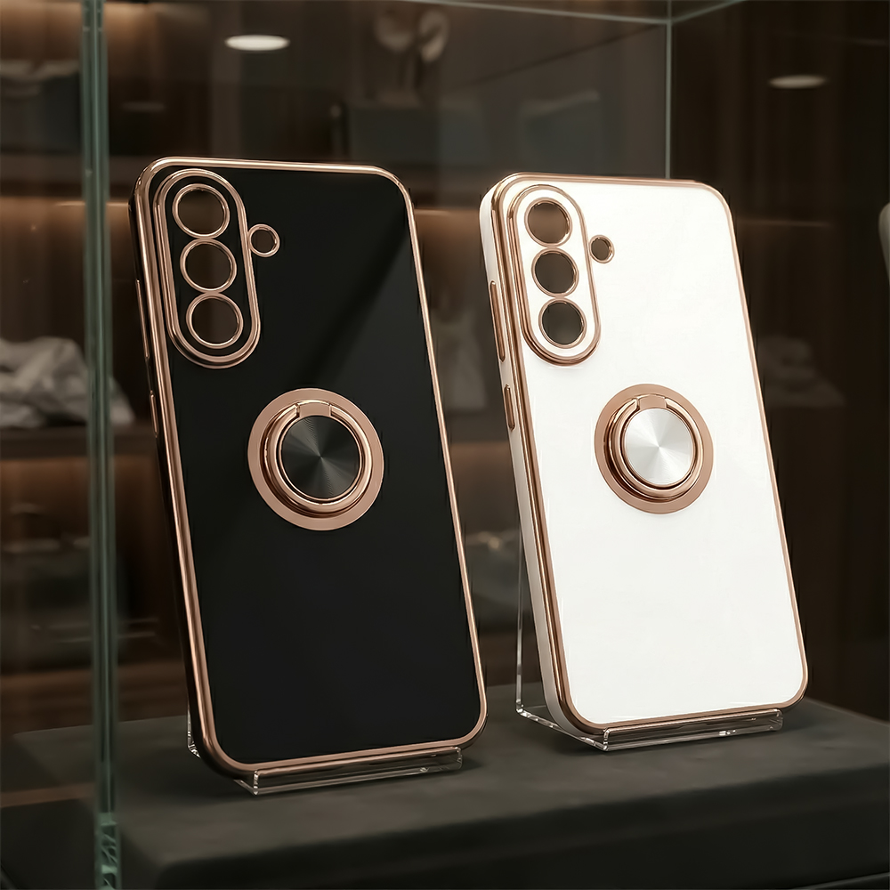 Galaxy A57 5G / ソフトケース 精密設計 フレームメッキ +リング / ブラック/ゴールド