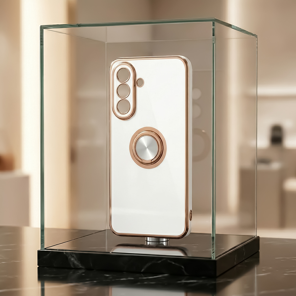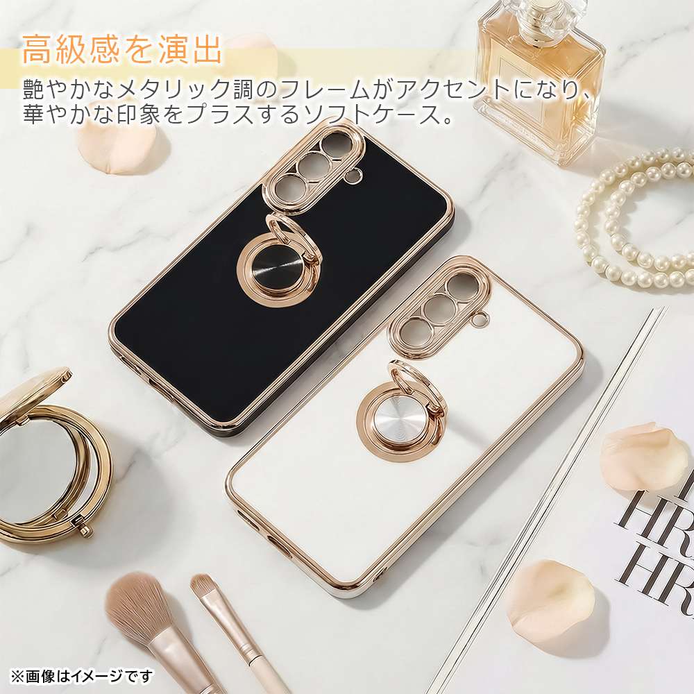 Galaxy A57 5G / ソフトケース 精密設計 フレームメッキ +リング / ホワイト/ゴールド